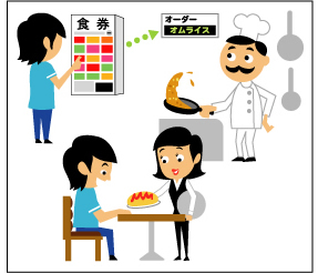 ■お客様は自動販売機で食券を購入する。自動販売機