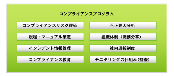 弊社のコンサルティングおよび教育プログラムは、上記の解説にある「仕組みを構築することによるコンプライアンス」を